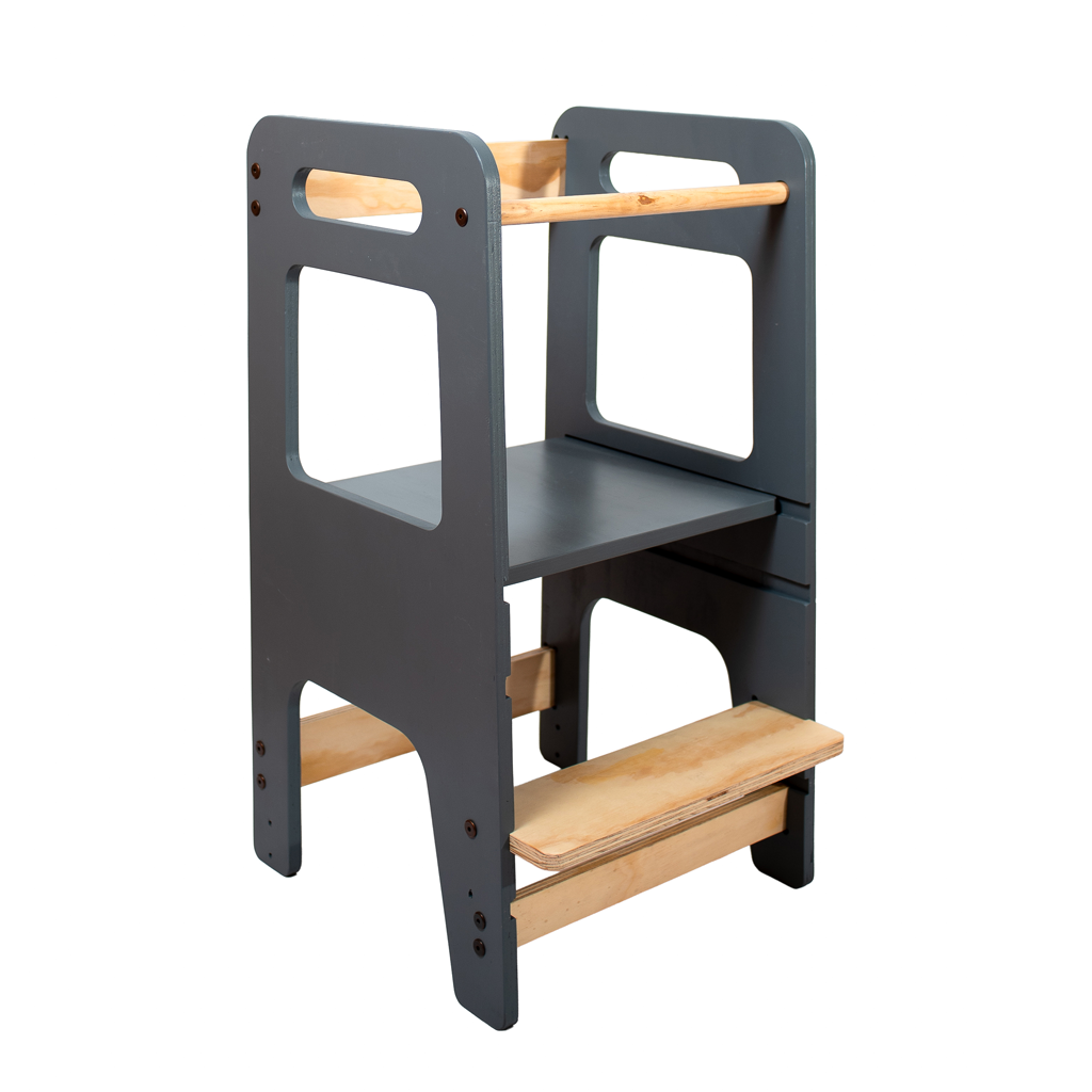Torre de aprendizaje, estructura de ayuda para niños de ensamble, fomentar actuvidades elaborado en madera natural contraenchapado pino